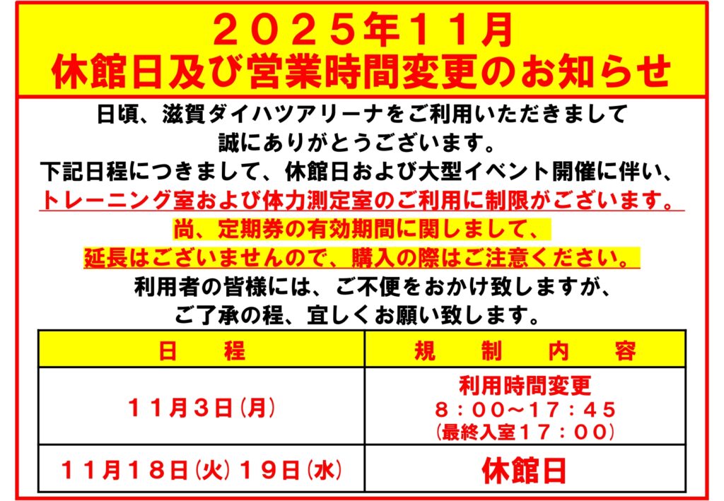 日頃、滋賀ダイハツアリーナトレーニング室をご利用いただきまして誠にありがとうございます