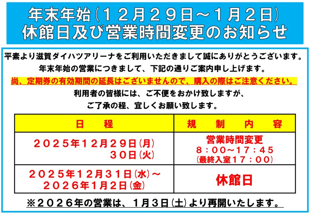 平素より滋賀ダイハツアリーナをご利用いただきまして誠にありがとうございます。