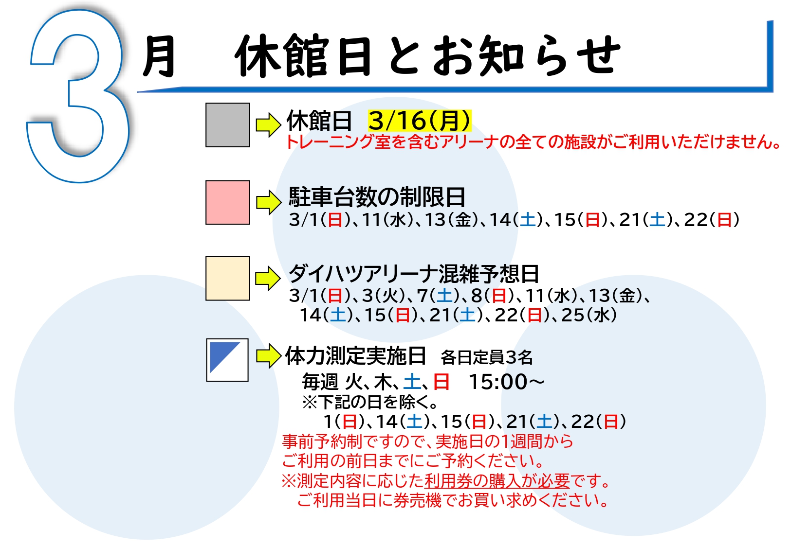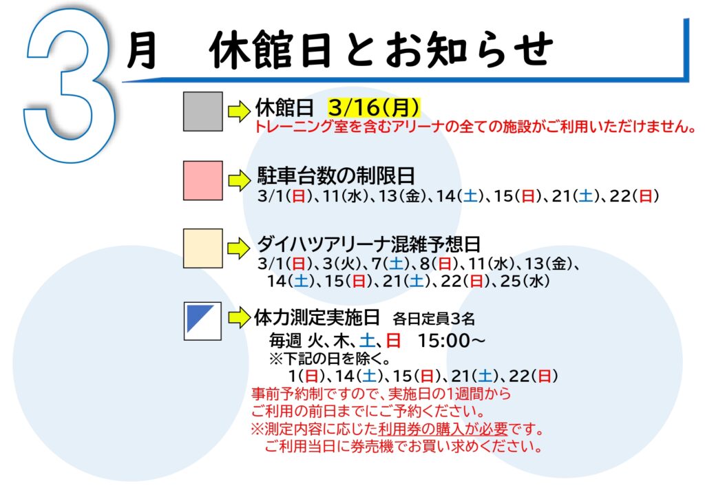 ◆3月の休館日とお知らせ◆