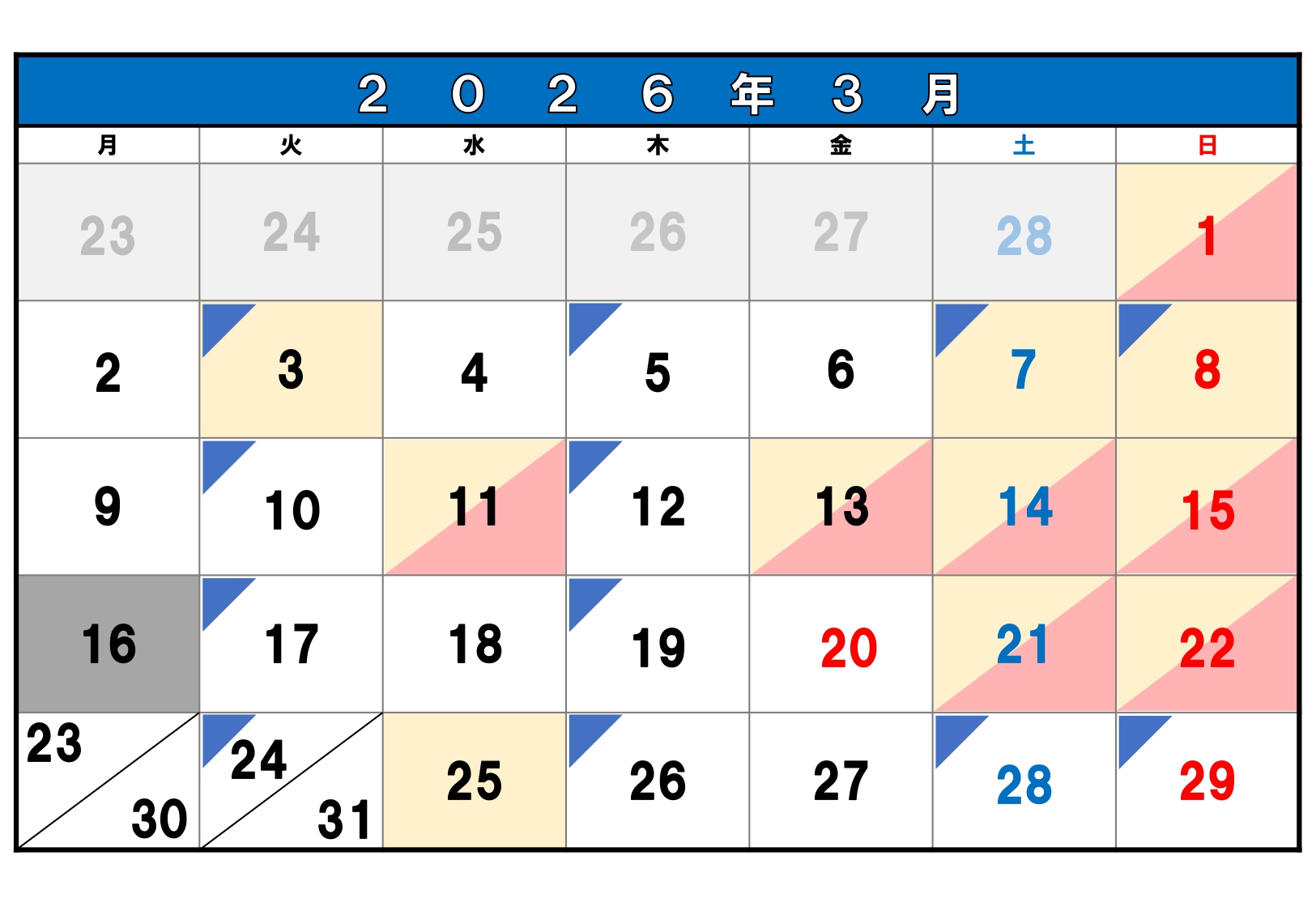 3月のカレンダーを更新しました!
