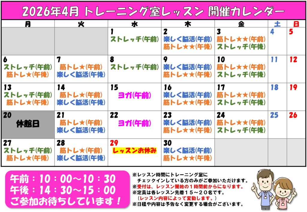 【2026年4月】レッスンカレンダー