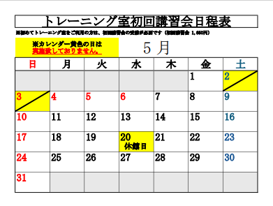 ※講習会終了後にそのままトレーニング室をご利用される場合、